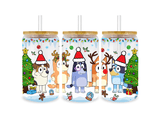 Christmas Bluey and Friends Glass Cup Wrap | Iris DTF