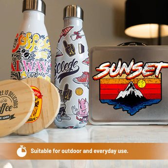 UV DTF transfers are waterproof and scratch-resistant, but hand-washing is recommended for long-lasting results. Avoid dishwashers, soaking, or abrasive scrubbing. Perfect for custom drinkware projects and other hard goods.