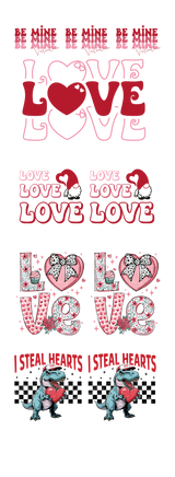 Celebrate the spirit of love and creativity this Valentine’s Day with our Fun & Festive: Valentine’s Day DTF Gang Sheet 22"x60" Premade DTF Gang Sheet. This vibrant and versatile DTF gang sheet brings together a collection of playful designs, including delightful "Be Mine" text, charming "LOVE" motifs, and an adorable heart-stealing dinosaur, making it the perfect choice for all your festive projects.